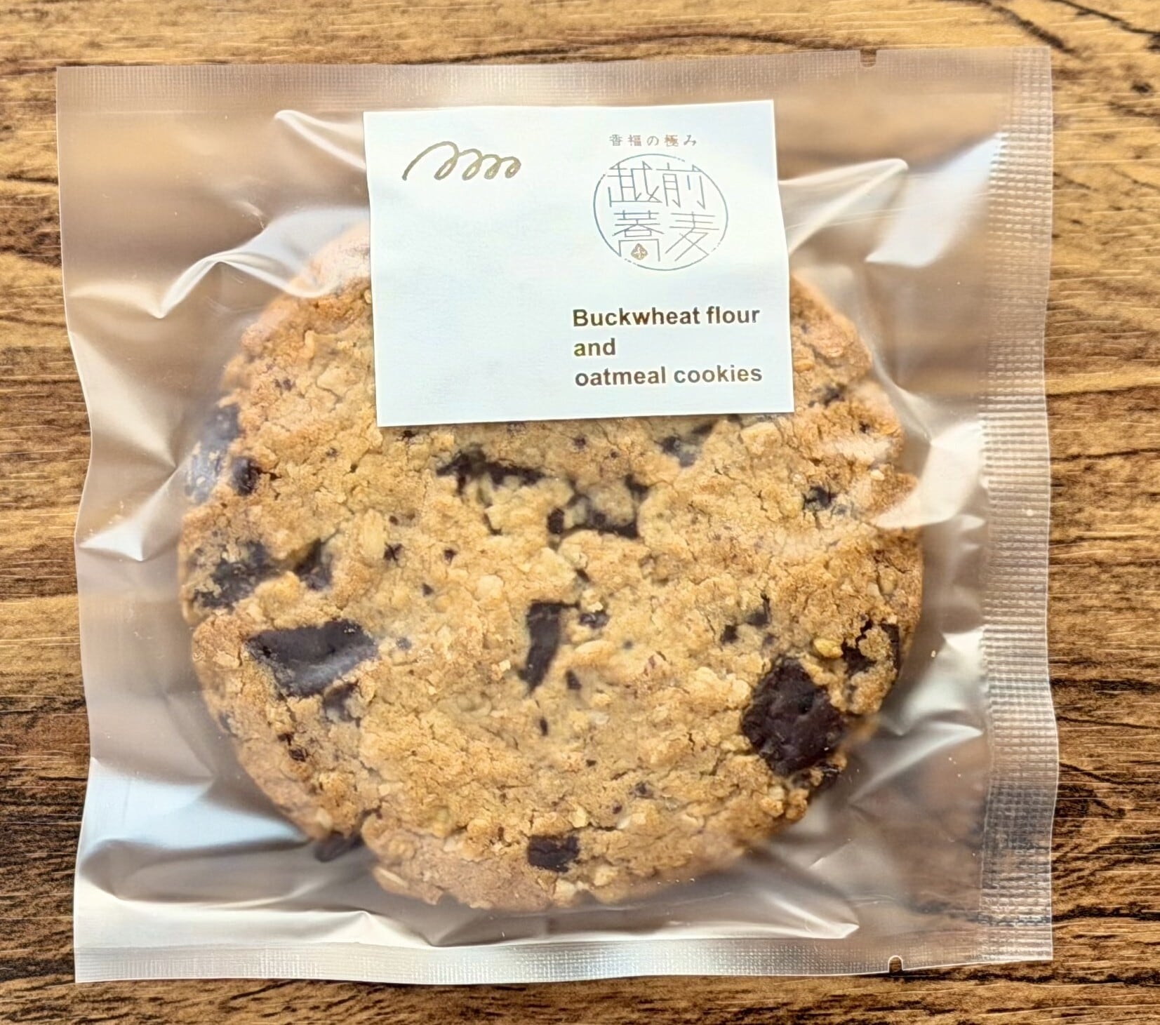 ・蕎麦粉(玄蕎麦(福井県産))、バター、きび砂糖、チョコレート、オートミール、蕎麦の実(福井県産)、加糖卵黄/トレハロース、膨張剤、乳化剤、香料、(一部にそば・卵・乳成分・大豆を含む)
