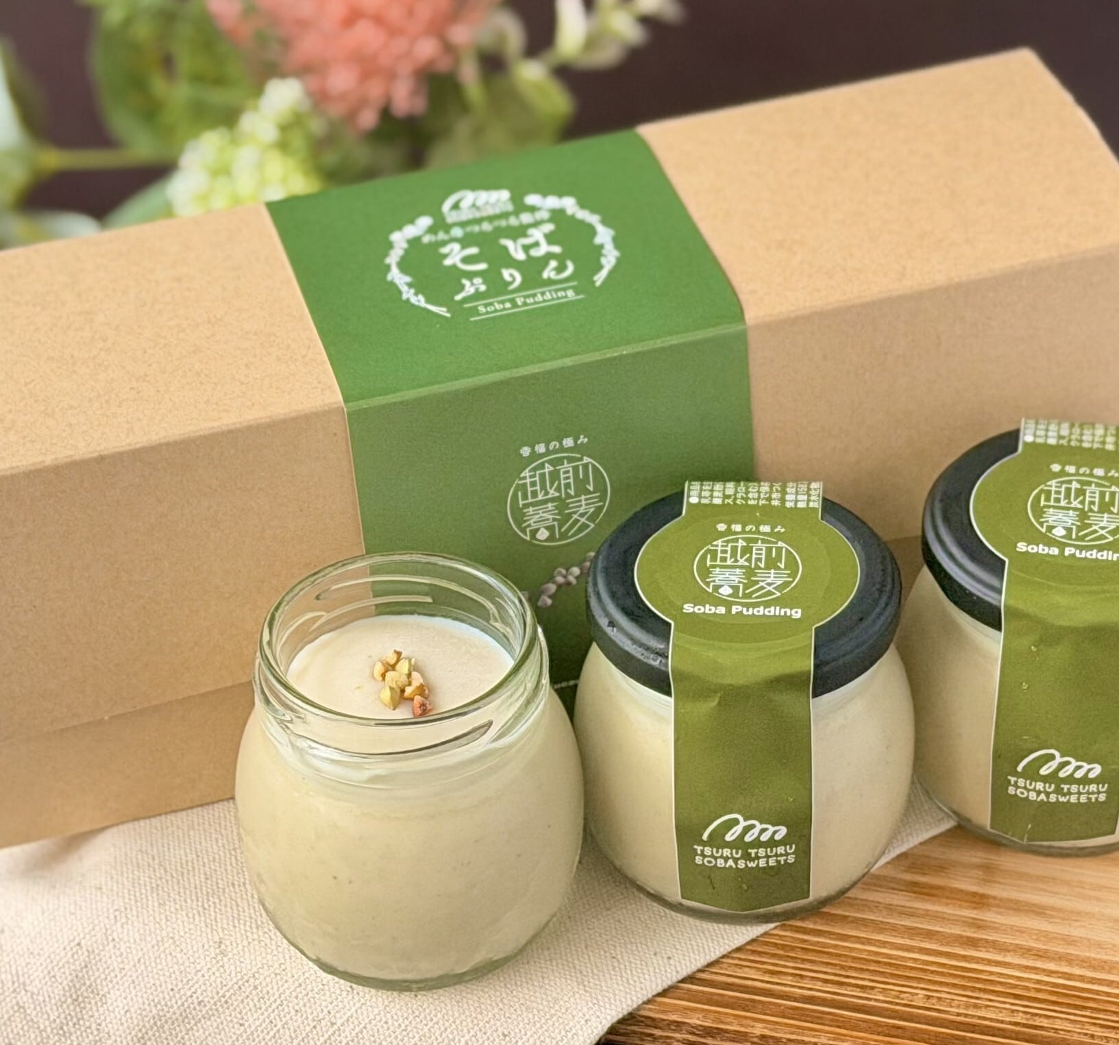 濃厚そばプリン ~そば茶クリーと2層仕立て~は、香ばしいそばの風味を生かした特製デザートです。そば茶クリームと蕎麦粉を使用して作った濃厚なプリンの2層仕立てにより、それぞれの味わいがバランスよく楽しめます。クリーミーで濃厚な舌触りと、そばの香りが心地よく広がるコク深い一品で、ティータイムや手土産にぴったりです。また、蕎麦の栄養価を感じながら、ディライトなひとときをお過ごしいただけます。